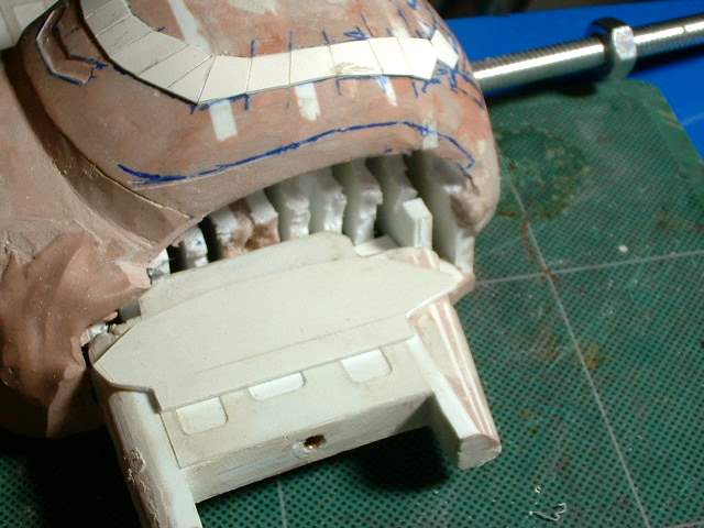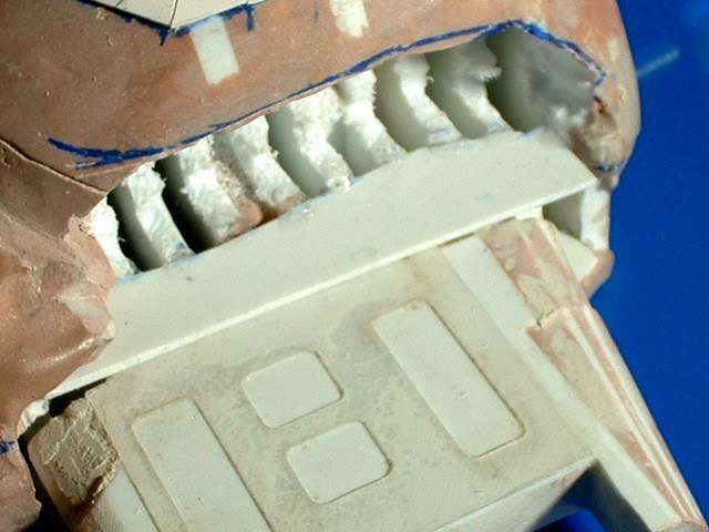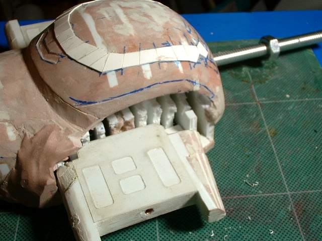 A piece of sheet styrene added to start off with. I had to match the piece to the inside profile so there was a lot of test fitting and little modifications before I got a good fit. |