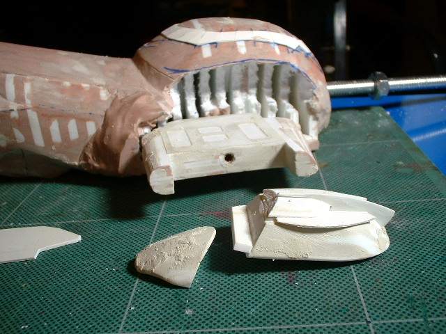 Lots of carving and test fitting with the model shuttle to make sure things fit |