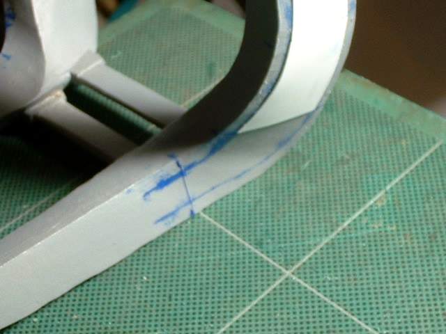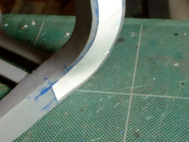 A strip was glued to the front section and positioned on the part using the guide lines marked on the main part |