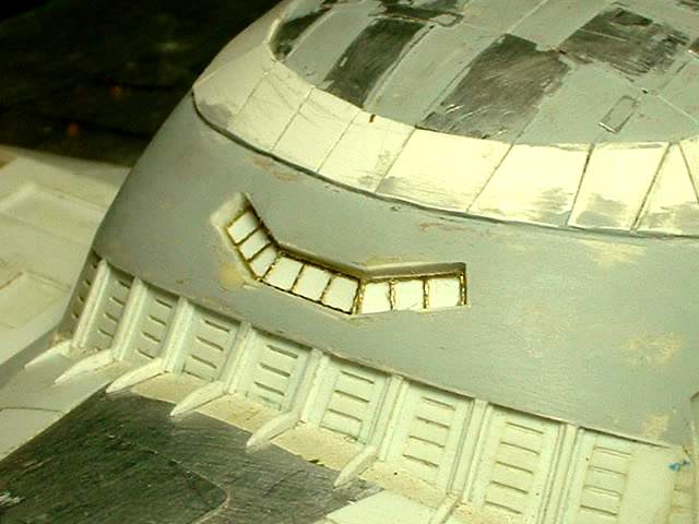 Adding the window details. White glue has been used and it looks messy |