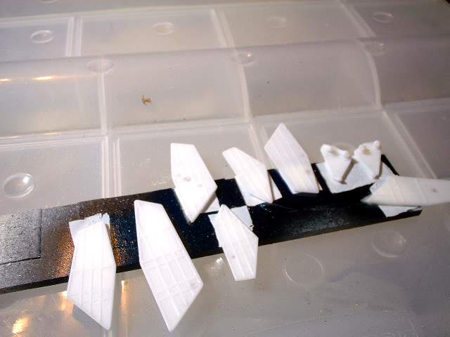 Er then it dawned on me that I need to make multiple sets of the shuttle, solar panels, arrays etc. So out comes a second set of solar arrays that are cleaned up and fixed up and put on a piece of foam board to be primed |