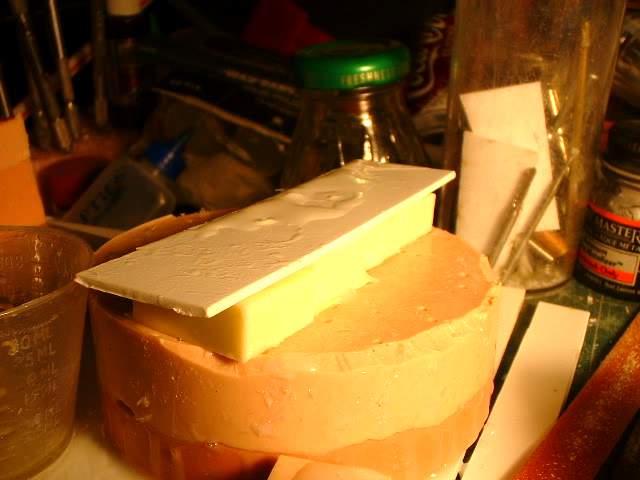 Styrene sheet pressed down on top of the landing pads to squeeze off the excess resin and give a nice finish on the back |