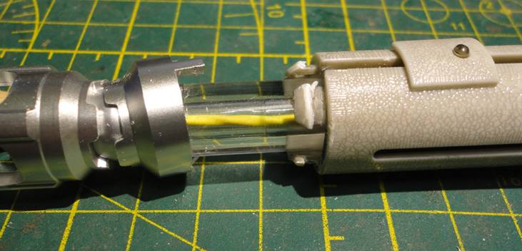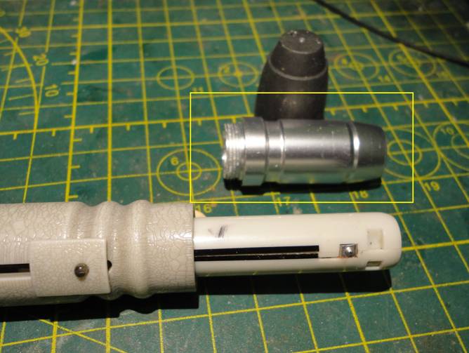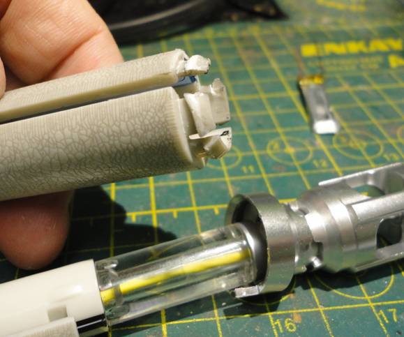 The end of the plastic body is all bent out of shape as I forced the aluminum end off.