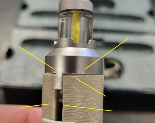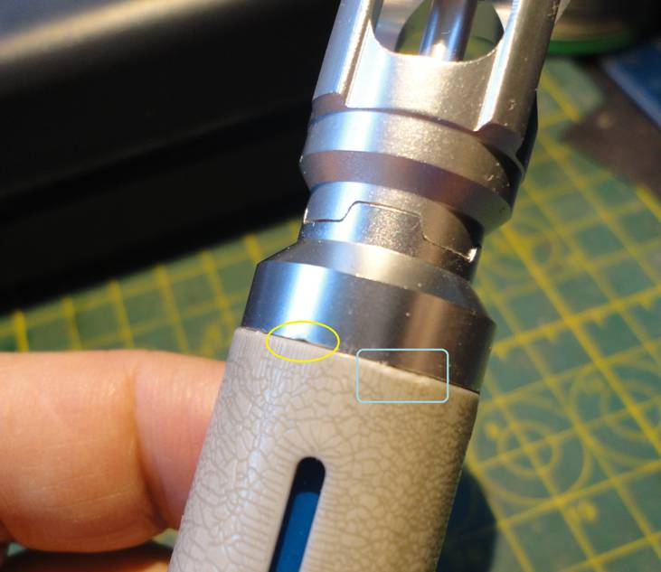 Using the blue prying tool I was able to pull the blue cap off without damaging the aluminum body.