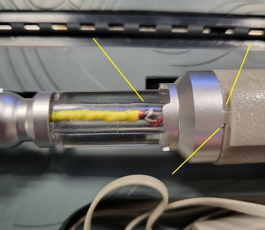 This one has less damage but you can also see that the wiring in the clear tube has not been put together correctly as you should not see the black, red and white wires.